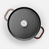 A rozsdamentes fül süllyesztett szegecsekkel van rögzítve – így a fedő egy darabból áll, és könnyen tisztítható. Az edény minden típusú főzőlappal kompatibilis, és gond nélkül használhatod a kerti grillsütőn, vagy 260 °C-ig akár sütőben is. Főzzön otthon úgy, mint egy profi séf.